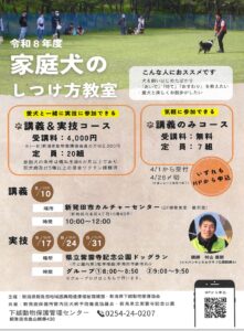 家庭犬のしつけ方教室(ドッグラン貸し切りのお知らせ)New!!