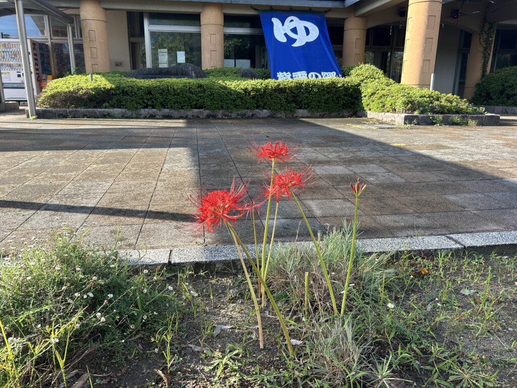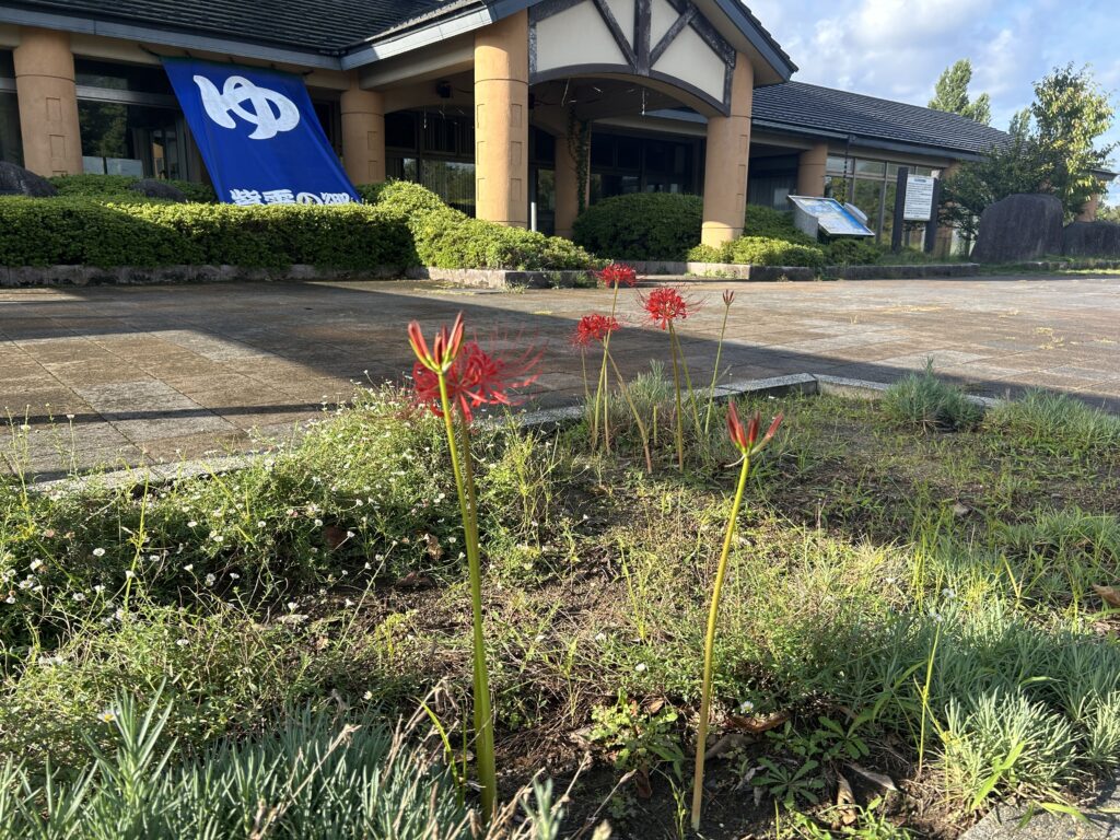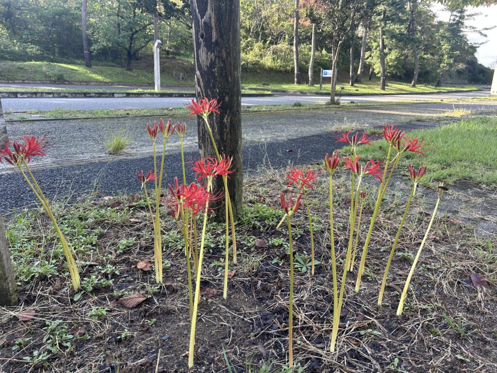 現在、紫雲の郷玄関前と公園管理事務所前には彼岸花が咲いています!!