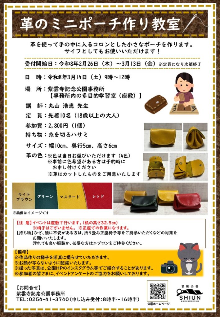 | 受付開始日 | 令和8年2月26日(木)~3月13日(金)※定員になり次第 |